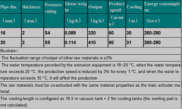 The stable production speed of pipes below φ32 specifications is about 50~60m/min